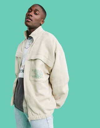 Asos Design Oversized Smart Jersey Jacket In Beige With Text Print Shopstyle